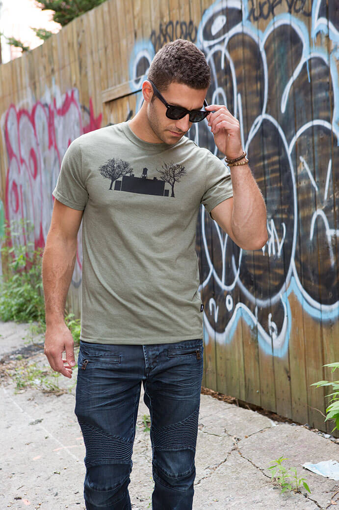 This T-shirt is inspired by water towers and reservoirs that can be seen in major cities, such as New York or Montreal. This one makes particular reference to the Mile End in Montreal. The imposing building, built in 1924, and its water tower are distinctive elements of Montreal’s heritage that bear witness to the industrial past of the Mile-End district. This emblem is readily visible thanks to its location between St. Laurent Boulevard, Van Horne Avenue, and the Canadian Pacific railroad tracks.