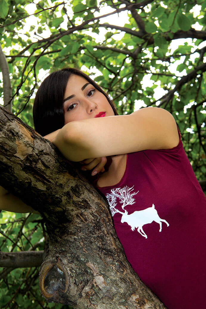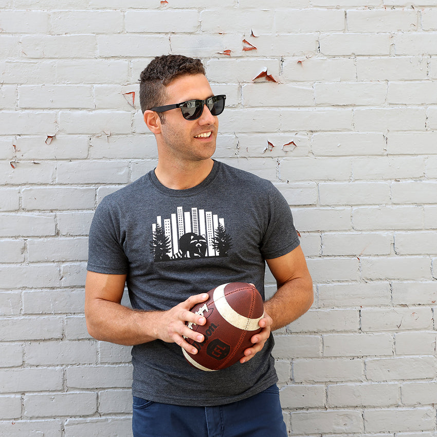 Este diseño está inspirado en un viaje a Charlevoix, una hermosa región de Quebec, donde se agregan paisajes de coníferas y montañas a las puestas de sol. La camiseta verde evoca el verano, y la camiseta gris evoca el invierno.