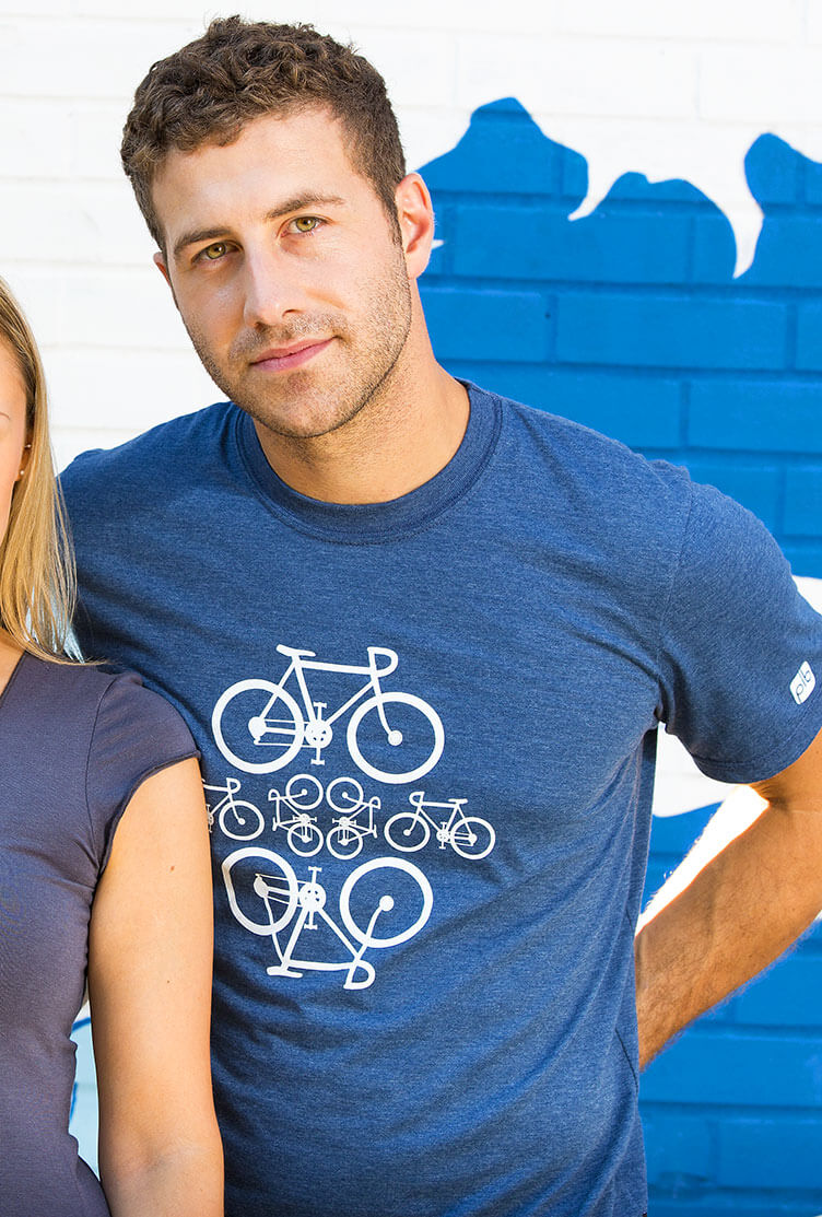 Vous avez le vélo dans le sang? Avec ce T-shirt, PLB sort de ses habitudes. Le vélo est imprimé grand format, et passe de bord en bord du devant du T-shirt. Vélo ADN est disponible exclusivement en ligne.